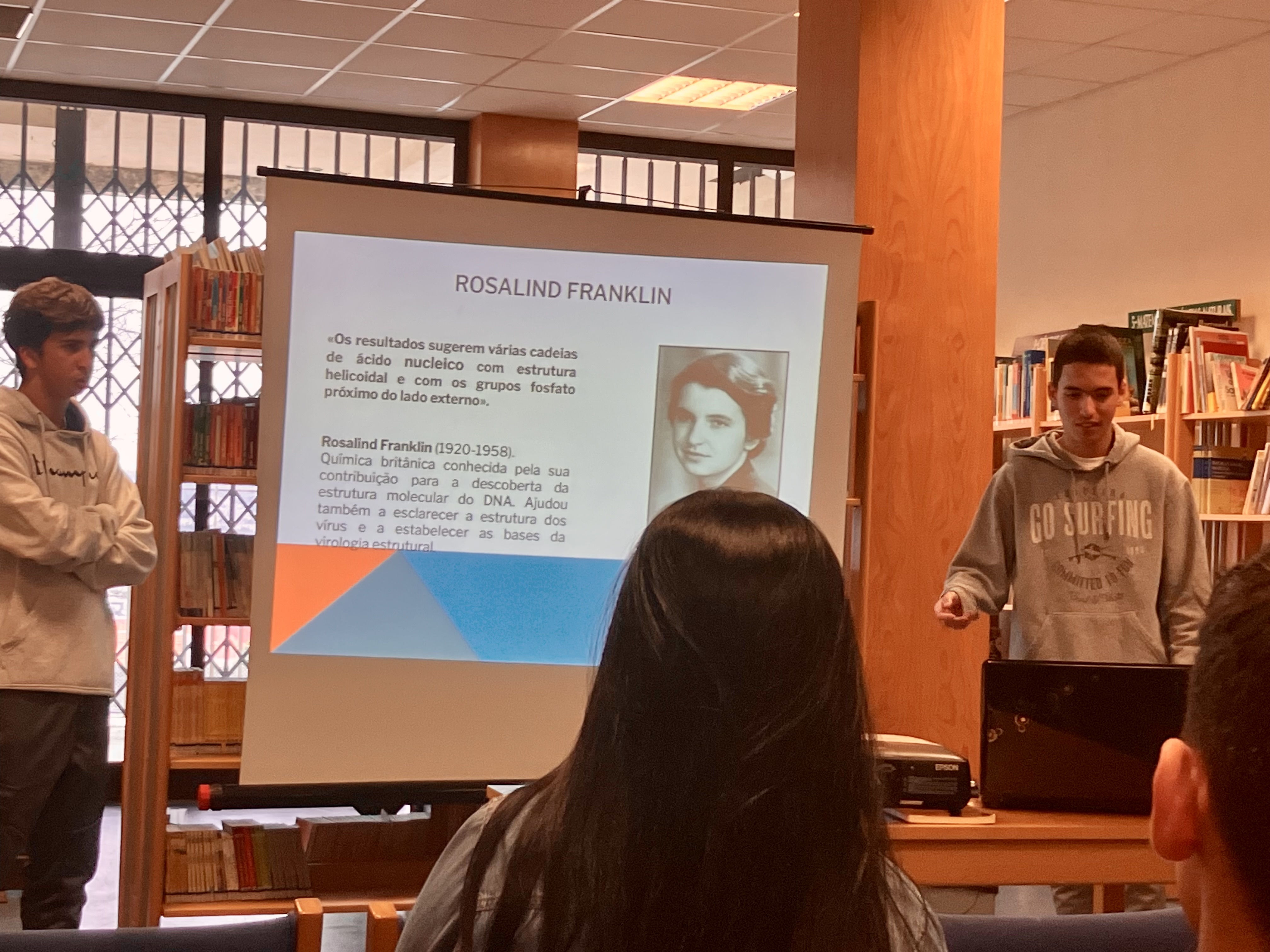 Dando continuidade ao trabalho iniciado no 1º período, realizou-se no dia 23, na BE da escola Pires de Lima, a apresentação dos trabalhos desenvolvidos nas aulas de biologia e filosofia, dos alunos do 11ºA, B e E, subordinado ao tema "As relações da filosofia e da ciência".